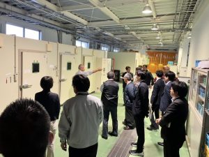 10月23日には,肝属地域交流会情報交換会にて,フリーズドライ緑茶の試飲等 当センターの紹介を行ないました。また,10月24日には,当センターに参加者の一部が来所されました。横断幕でお出迎えするとともに,センターの取り組みの紹介(フリーズドライ茶やライスクリームなどの試食)や加工施設・流通技術実証施設の見学を行いました。